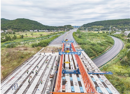 10月12日,由中铁五局承建的京昆高速广元至绵阳段扩容工程牛头河大桥完成最后一片T梁架设,标志绵阳段完成全部架梁,为全线建成通车奠定坚实基础。京昆高速广元至绵阳段扩容工程建成后,将使贯穿川陕的骨干公路流量进一步提升,使其成为成渝地区乃至我国西南地区通往华中华北、京津冀的又一条快捷通道。 新华社记者 王曦 摄