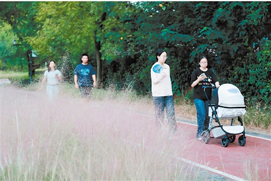 近日,南溪湾公园的粉黛乱子草悄然晕染出朦胧粉雾,为公园生态画卷添上点睛之笔。市民漫步在步道上,享受这份独特的粉色惬意。融媒记者 杨成栋 摄