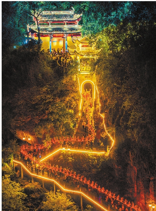 10月18日晚,龙腾方岩活动震撼亮相。流光溢彩的板凳龙,让游客尽情领略民间传统文化的魅力。龙腾方岩活动不仅是一场精彩的视觉盛宴,更是对永康传统文化的传承与弘扬。 融媒记者 胡华超 杨成栋 摄