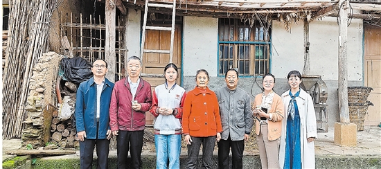 走进小戴外婆的家中,眼前的景象更令人动容:三间破旧的房屋,墙体有些地方已经斑驳脱落,屋顶的瓦片也有几处破损。其中一间屋子堆满了土豆、红薯和花生等,那是一家人赖以生存的粮食;另一间屋子堆满了过冬的木柴,整齐地码放着,散发着淡淡的木头清香;还有一间屋子则杂乱地堆放着各类杂物,旧农具、破损的家具挤在一起,显得格外拥挤。受一个多月阴雨天气的影响,每间屋子都弥漫着浓重的霉味,让人不禁心头一酸。老外婆见我们来了,满心热忱地要去淘米生火做饭,我们深知这份心意的厚重,却也不愿再给老人添麻烦,于是再三婉言谢绝,反复说着我们还有行程要赶,让他们留着自己吃。老人见我们态度坚决,只好作罢,但眼神里的歉意与不舍,却让我们心里暖烘烘的。