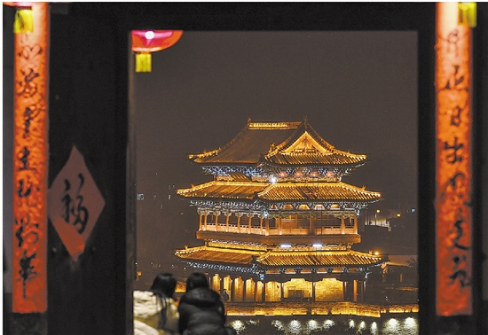 深秋时节,山西省忻州古城休闲游热度不减。游客错峰出行,感受传统文化的独特魅力。图为10月22日拍摄的忻州古城夜景。 新华社记者 曹阳 摄
