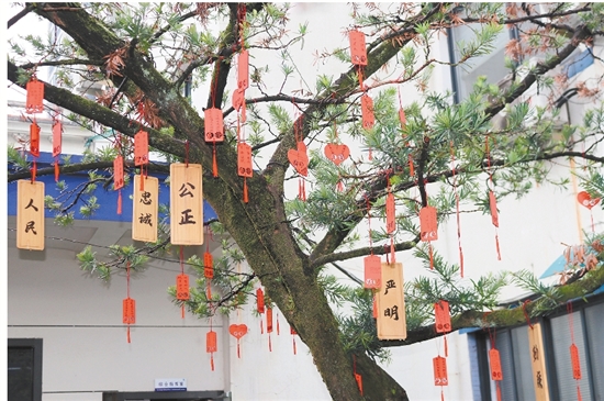 在市公安局石柱派出所内,有一棵特殊的树,名为“守正松”,树上密密麻麻地悬挂着红色的感谢牌,这些只是近两年收到的一部分。每一块牌子都在无声地表达感谢,诉说着一个个执法为民的故事。