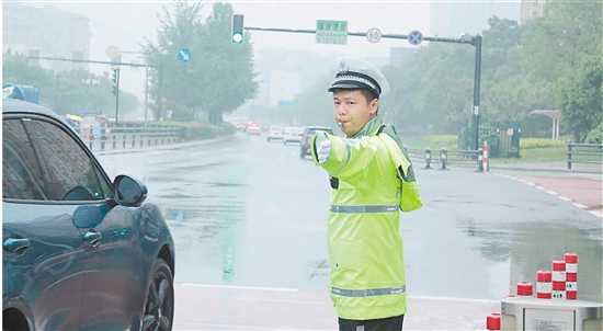 清晨的十字路口,寒风扑面。市公安局交警大队城区二中队民警袁景煜正以标准手势引导车流,并不时叮嘱路过的市民:“大爷,骑电动车一定要戴好头盔,安全最重要!”