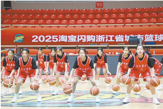 11月14日,永康队将在主场迎战富阳队。唐先学校女子篮球队精心准备了篮球主题节目《红色篮球梦》,为比赛加油助威。近日,在排练现场,学生们熟练地进行单手运球、双手交替运球,展现出扎实的基本功。