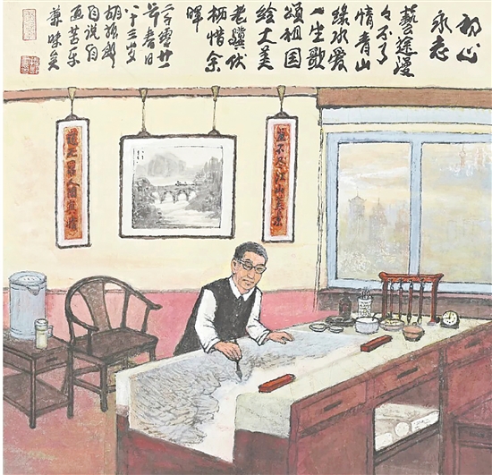 你们问起我画室名的来历,名叫“养艺斋”,陆俨少等名家题写过斋名。养艺,就是取之于艺术、用之于艺术,要奉献艺术、奉献社会,多做实事、好事,我一生的艺术成就来自艺术,得益于艺术,如今也该回馈社会。这是一个艺术家的责任感和使命感。