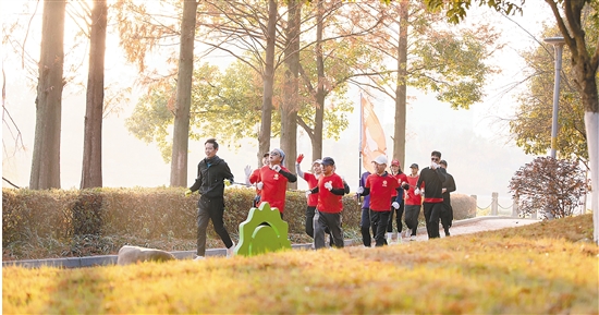 近日,一群特殊的跑者出现在南溪栈道上。他们统一身着红色队服,结伴而跑。据悉,这是一支名为“追光跑团”的队伍,左边是视障跑者,右边是志愿者。他们靠着一根陪跑绳并肩奔跑,林间阳光洒下斑驳光影,勾勒出冬日户外的温馨画面。 融媒记者 杨成栋 通讯员 陈国豪 摄