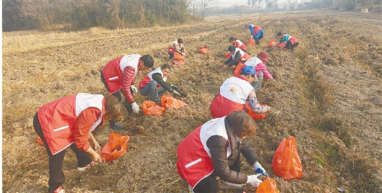 本报讯(融媒记者 胡东来) 1月17日,市益心同行社工服务中心组织30多名志愿者,前往芝英镇雅庄村,帮助当地农户采收毛芋。