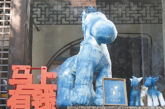 小巧玲珑的挂件、憨态可掬的布偶、别致吸睛的胸针、生肖主题挂历、大气的桌面摆件……工坊里的马年系列作品琳琅满目。蓝白交织的传统纹样,搭配灵动的骏马造型,既保留了蓝印花布的古朴厚重,又融入了生肖文化的鲜活趣味。