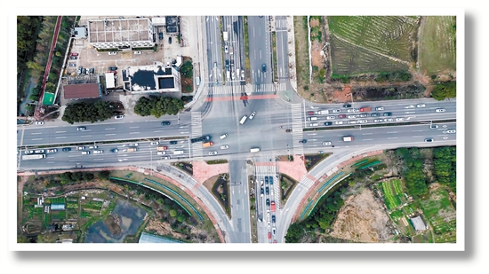 330国道长安路路口车流量大,早晚高峰时段拥堵现象突出。对此,共新增5个直行车道和1个左转车道,共改造道路长度0.57公里。对路基、路面、桥梁拓宽、交通安全设施、排水工程及绿化等进行改造提升,有效解决了以往道路拥堵、破损等问题,市民出行体验得到明显改善。