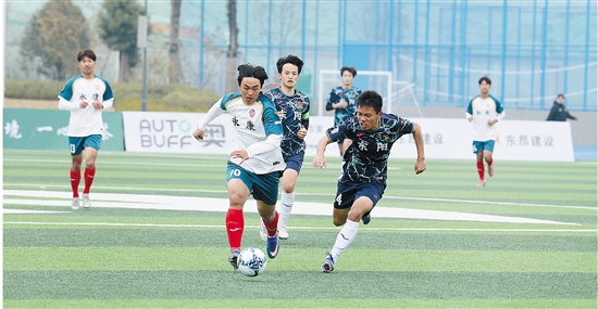 1月28日,金华市“八婺同心杯”足球超级联赛中,永康队主场对阵东阳队。两队进攻势头迅猛,现场对抗激烈。最终,永康队以3:1战胜对手,夺取金超第三胜。