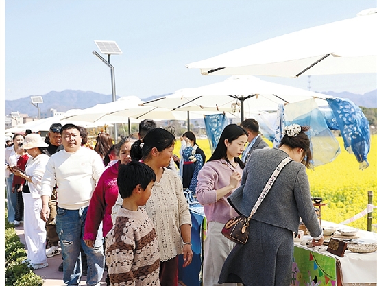 本报讯(融媒记者 陈凯璐 池欣桦) 3月14日,古山镇胡库下村在一片绚烂的油菜花海中举办库川市集,吸引不少游客前来踏青、赶集、赏春。