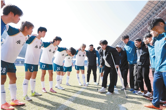 3月14日,2026金华市“八婺同心杯”足球超级联赛(以下简称“金超”)的3/4名决赛打响。永康队与婺城队激战正酣,而在赛场边,一个坐着轮椅的身影格外引人注目——此前在循环赛中受伤的永康队16号球员章嘉硕也来到现场。尽管无法踏上绿茵,他仍坚持在场边,陪伴队友拼搏至最后一刻。近日,记者走访了正在家中休养的章嘉硕。