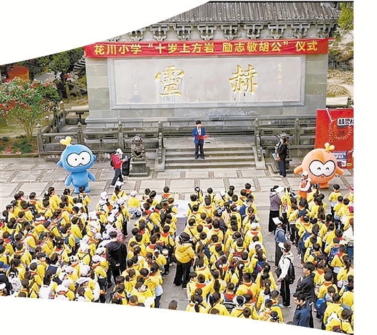 春风送暖,青山含笑。3月17日,花川小学360名十岁学生怀着无比崇敬的心情,一起登上风景秀丽的方岩,集体敬拜一位千年以来深受百姓爱戴、被尊为“胡公大帝”的先贤——胡则公。能和你们这群朝气蓬勃、天真可爱的少年朋友共同学先贤、明志向、话成长,我感到非常高兴,也特别欣慰。